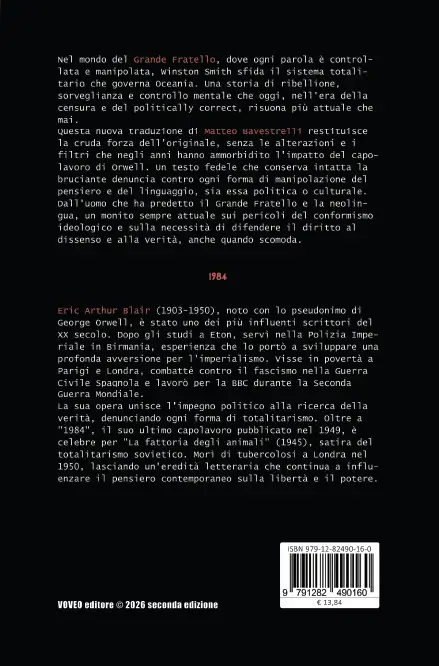 Questa nuova traduzione di Matteo Bavestrelli restituisce la cruda forza dell'originale, senza le alterazioni e i filtri che negli anni hanno ammorbidito l'impatto del capolavoro di Orwell. Un testo fedele che conserva intatta la bruciante denuncia contro ogni forma di manipolazione del pensiero e del linguaggio, sia essa politica o culturale.